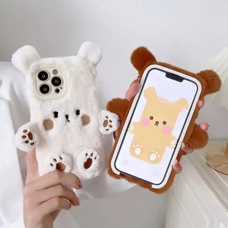 3D Smiling Little Bear Plush Phone Case
